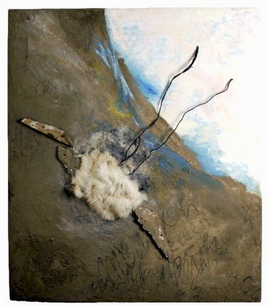 Asche, Ziegenhaut, Draht 140 x 160 2003