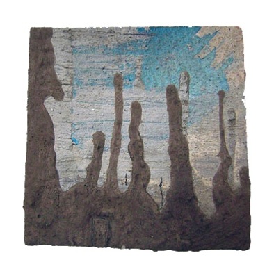 Asche, Pigment auf Schichtholz je ca 10 x10/15 cm