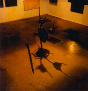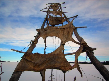 2008 entstand im Rahmen eines Symposiums die Installation aus Schafhaut, Holz, Kupferdraht, Eisen, Feldsteinen und Weidenstecklingen.
